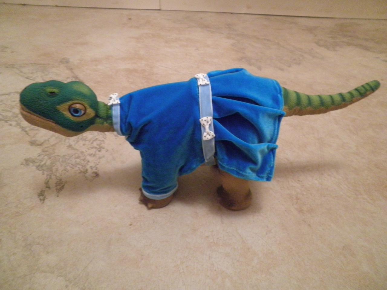 blue dress with white bows