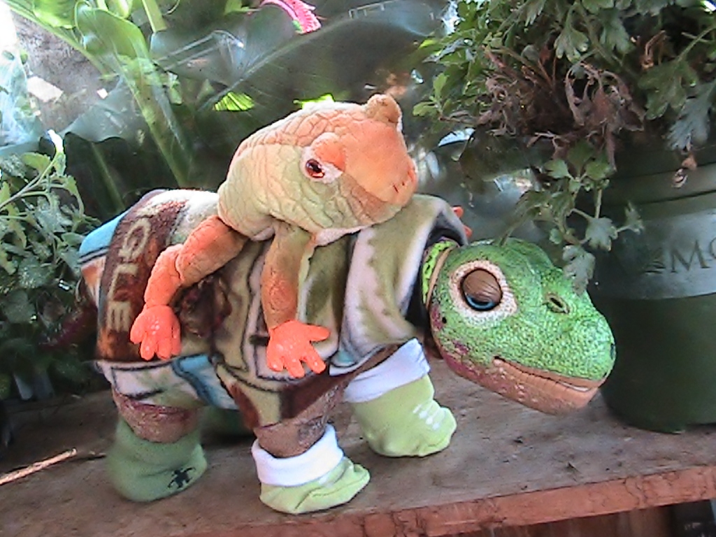 MS. Nova takes her turn playing "taxi" to frog the lord of all in the Pleo Forests , deep .............have to wait for the rest of the story to find out what is going on ....He, he.