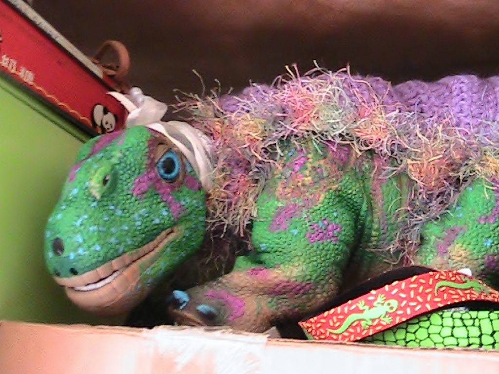 Pleos when they are purple and dressed in purple, kind of stick out like a 'sore thumb", so they dont really blend in, but this pleo doesn't believe it can be seen high on the shelf..LOl