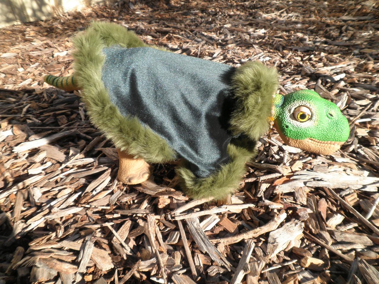 - green fur coat int he sun. It has a bit of a sparkle to it