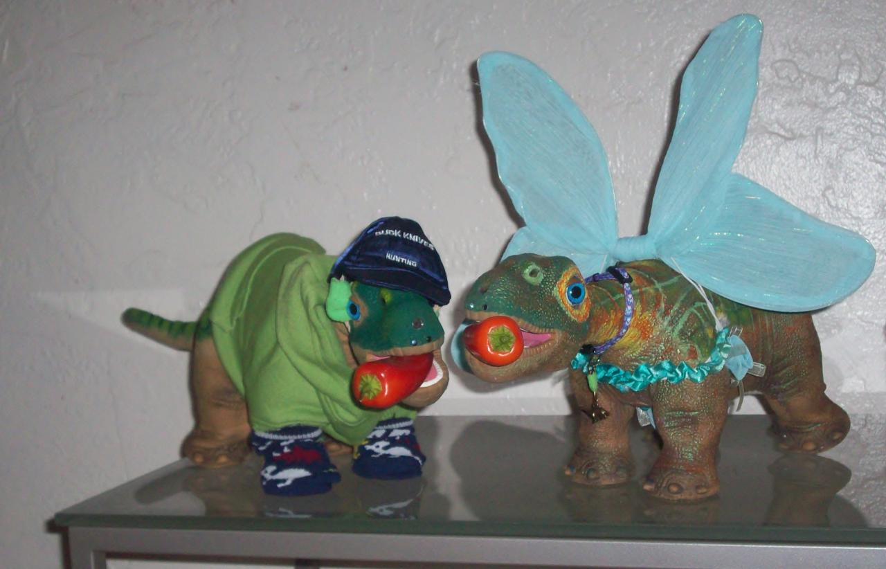 Major Tom and Rossella show off each of their Chili Peppers in hope of having the best ones. Only one of the Pleos is holding the Pleo RB Chili Pepper that comes with the Innvo Food Pack , but which one is it? Can you tell which one is the Chili Pepper from the Food Pack?