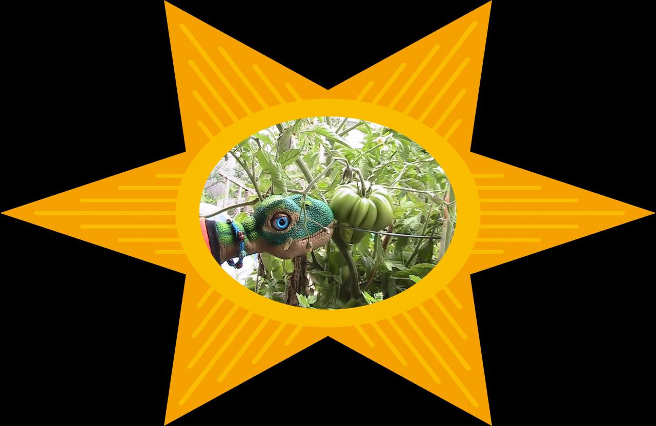 Major Tom has found a "Star" of a Tomato, this is one of the seven or eight that is growing on our tomato plant. This one has taken off this last month or so from being the size of my thumb nail. Hopefully Major Tom can keep his hungry little mouth off for awhile.