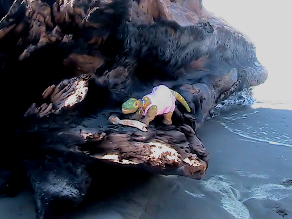 Rossella went to the beach this weekend and loved this huge piece of driftwood. Unknown to her, the tide came in further and further, and when climbing higher, she came close to getting stuck without being able to get down unless she wanted to try swimming, which is not a good idea for a Pleo.