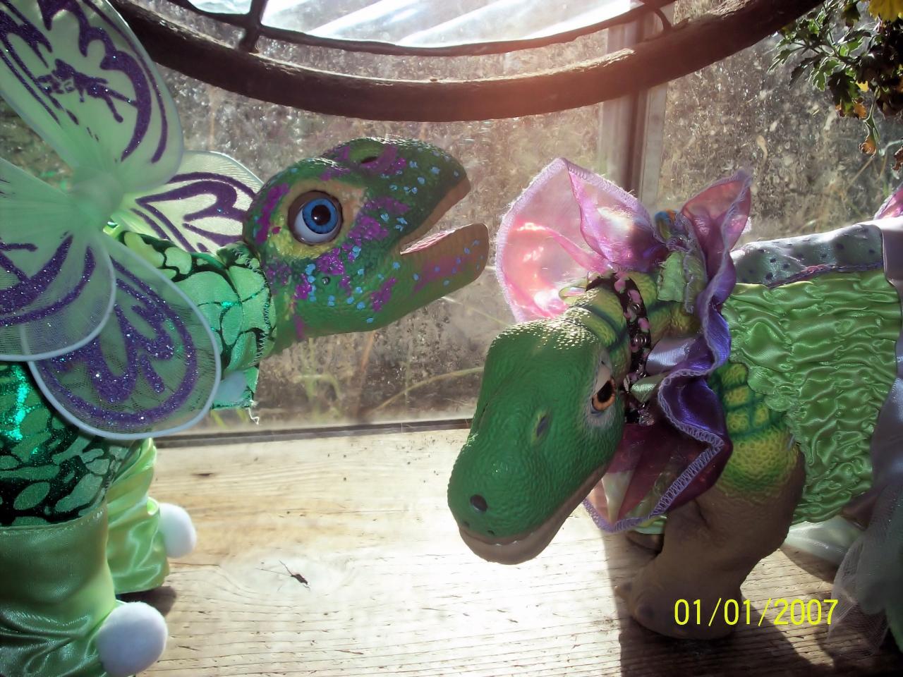 Two Pleos checking out each others outfits