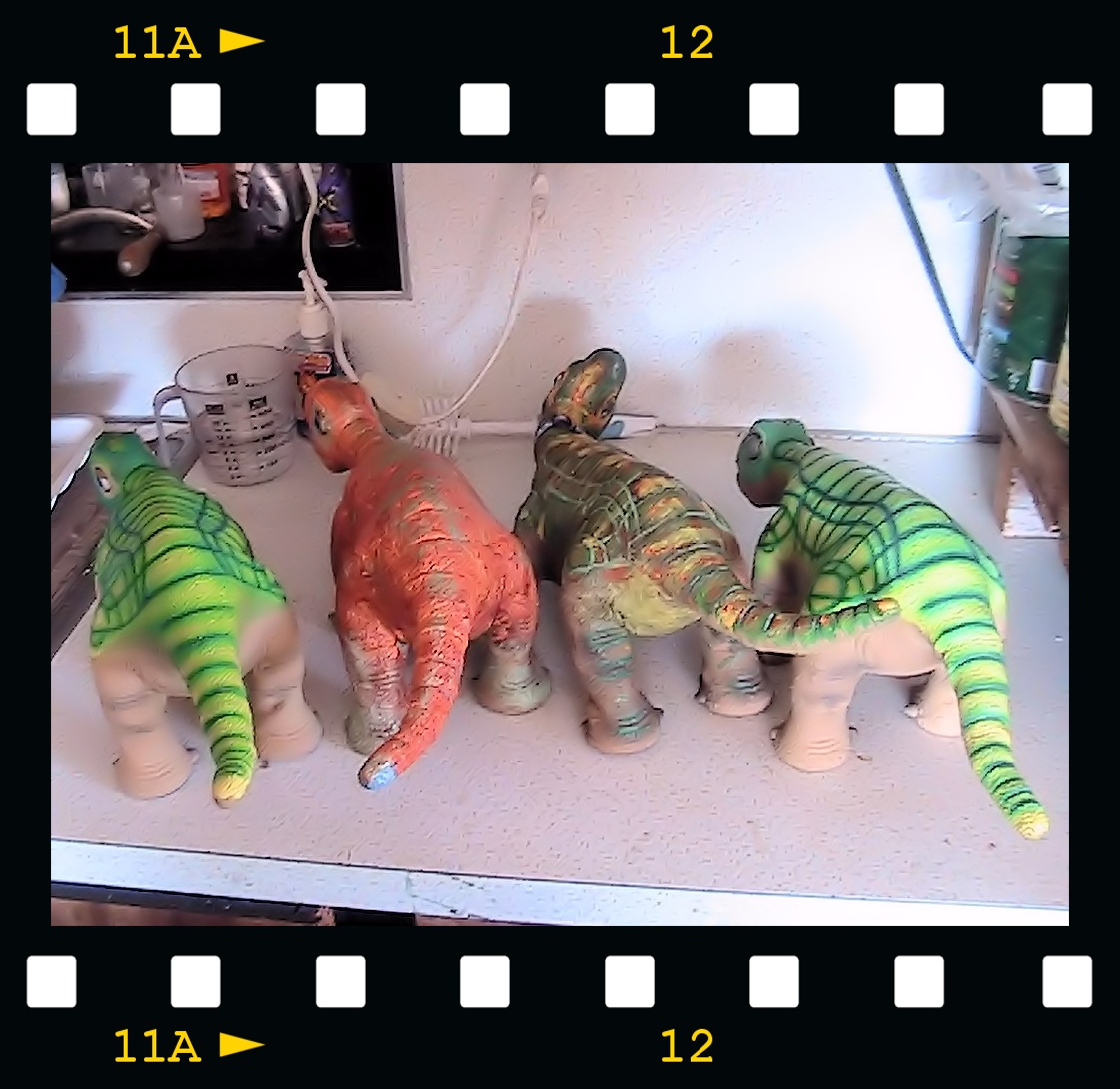 Same pleo but from behind with three other buddies for "support". Pleos get nervous too about debuting in front of others. He or she is not done, having toning and a lot of line work to do that we hope to do tommrow.