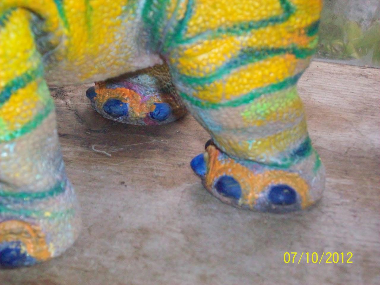 Any white or light colored areas are not paint, just light and natural coloring. I will put a second coat of color on toe and bottom foot area later, not the stripes on the legs though.