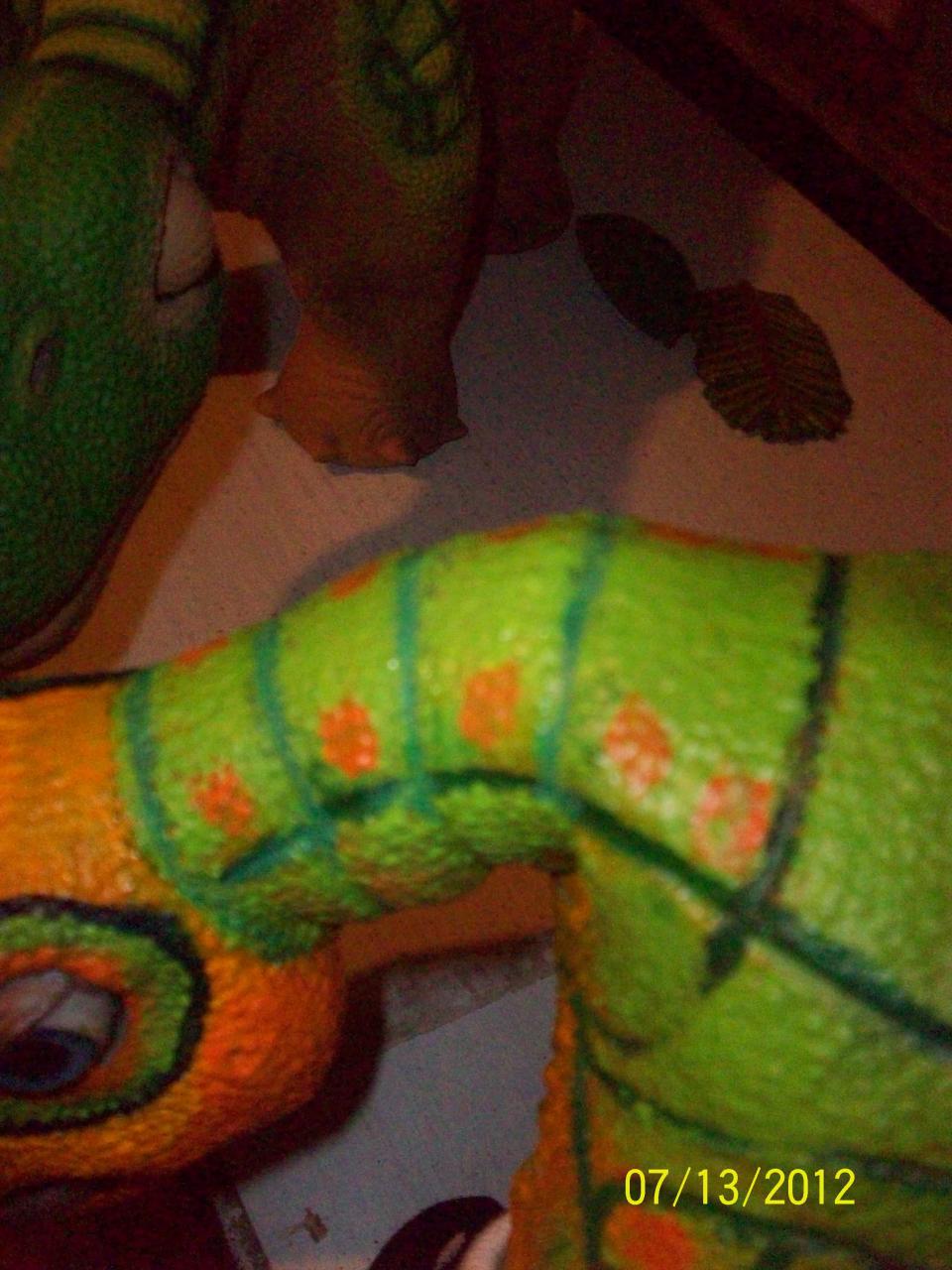 This is an extreme close up in response to a request from IMR, no visible paint chips or breaks in the paint, I think the fact I painted this Pleo before and removed most of the paint but the undercoat previously had latex mixed in has helped, along with almond oil and olive oil to "condition' the skin.