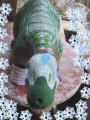 Taken yesterday outside Pleo completed in off white or what Margery called, Silver so that is the color I will call it though clearly not silver. Aqua or turquoise type color lines compliment this Pleo . Bright coloring around the eyes make the eyes also pop. Hope some of you like this Pleo, it is in response to Luna of Germany wanting to know if white is possible, though not totally white, here is an example of white color scheme.