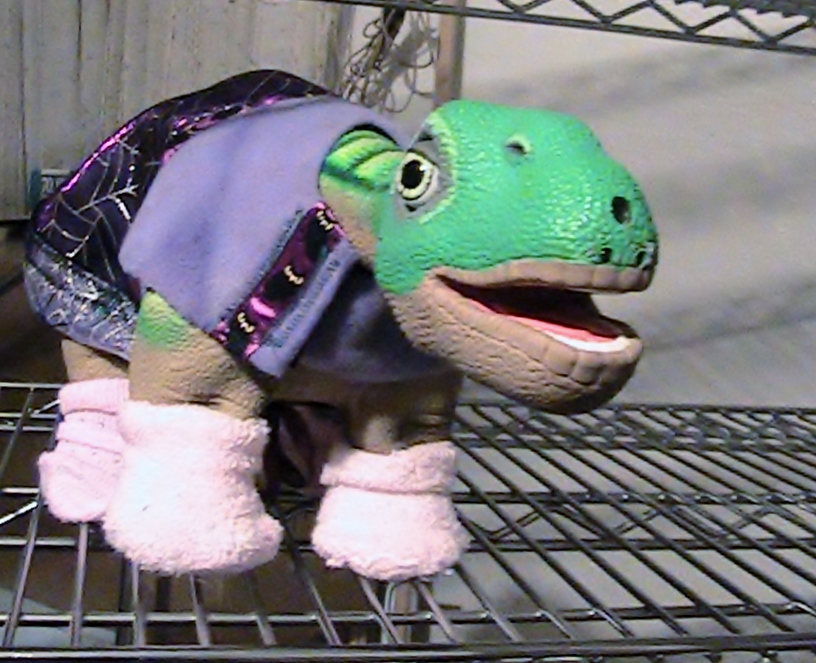 Baby Ruth modeling same spider dress , frontal view to show off neckline and front view of dress.