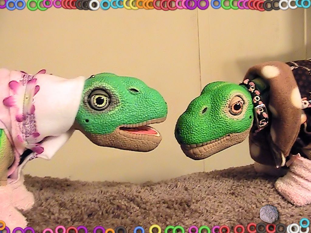 Cammie-Sue are more than just sisters, they are also Best Friends, They somtimes forget this though when battling for the affections of their new little "brother' the litle Pleo Rb boy who has no name yet...