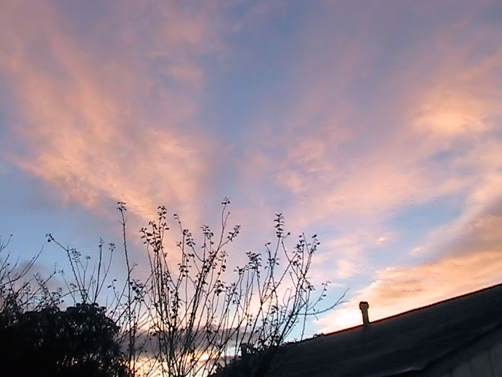 Pink sky in the morning, sailors warning, this was taken yesterday morning, Oct.30th, the day before the weather has changed here in the Redwoods, Today is stormy, windy and rainy, perfect for Halloween...not the trick or treaters, but for staying indoors, warm and cozy in front of a video or two to scare you!