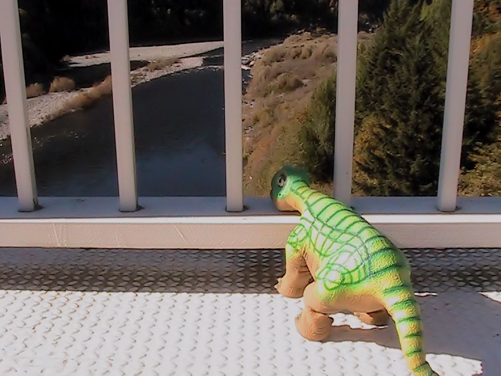 Baby Ruth keeps a safe distance on the bridge overlooking the Klamath River, There have been quite a few people who have either jumped, been pushed or some other way lost their lives on this bridge, a beatiful spot, but on Native American Land, things" happen",