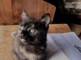 you can not see real well as she is asleep in this photo and torties are dark, but she is sleeping with her big catnip carrot, Love at first sight!