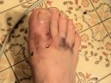 I think you can clearly see how swollen my big toe is here. of course the brusing is obvious as well.