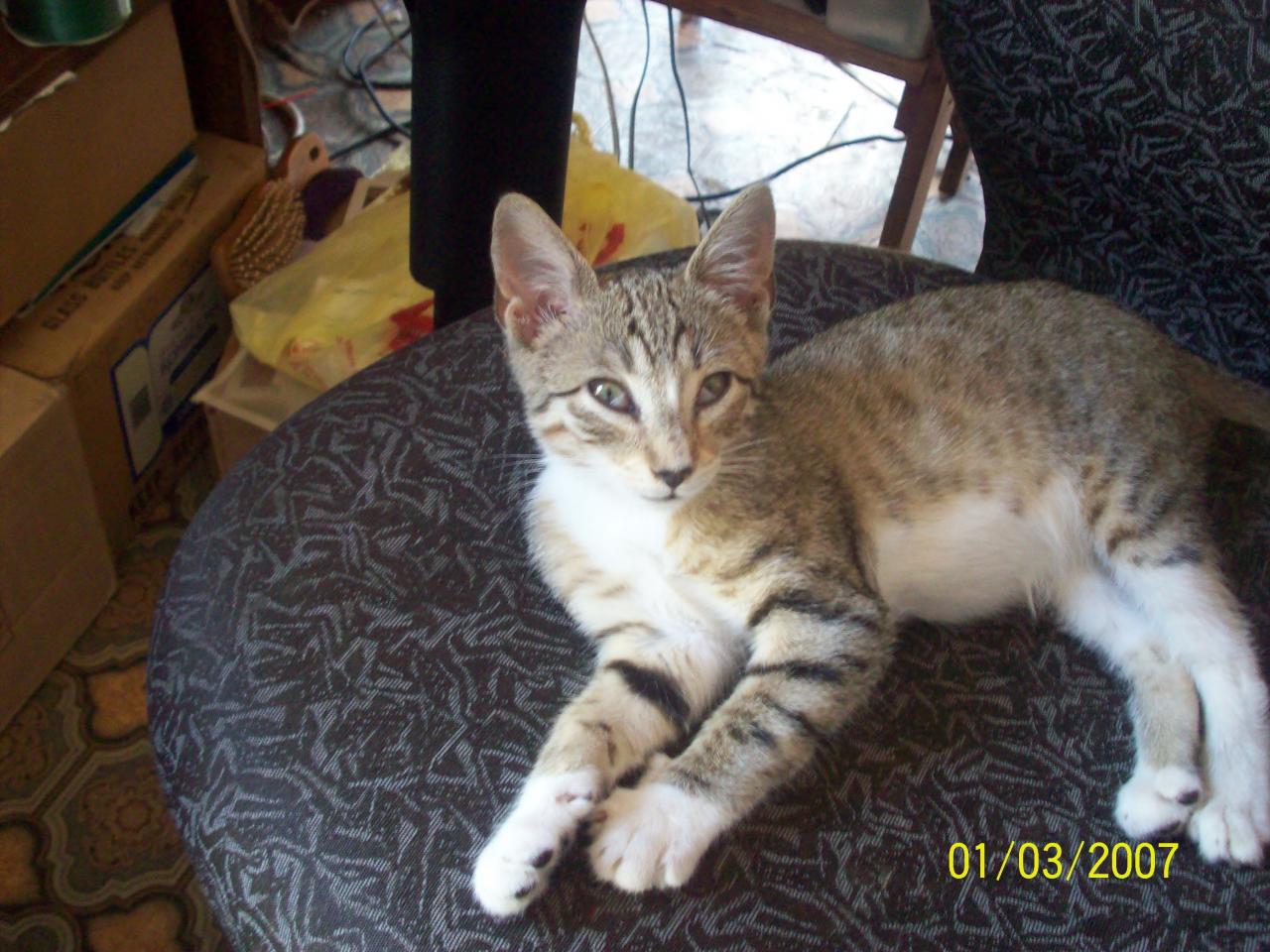 Poor Karuna the kitten, still sick since July 15th with Cat flu, better and eating on his own, but not over