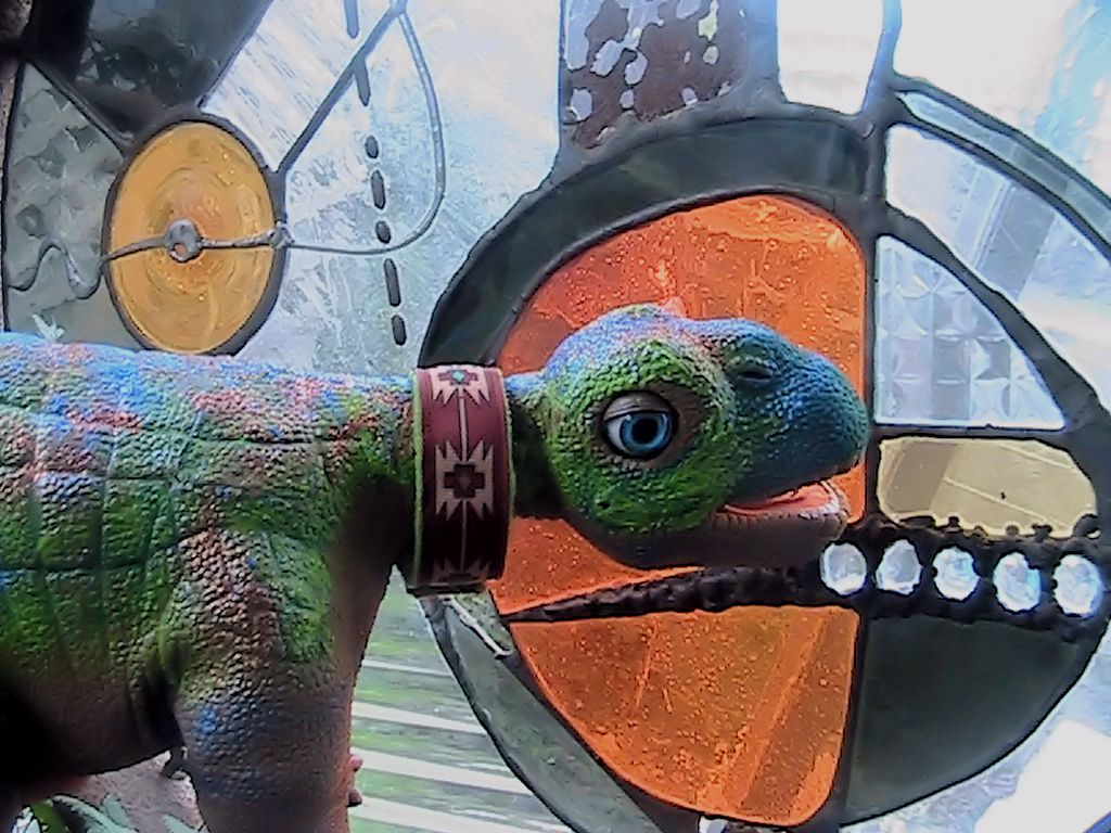 Standing near one of our Stained glass windows that my hubby made years ago.