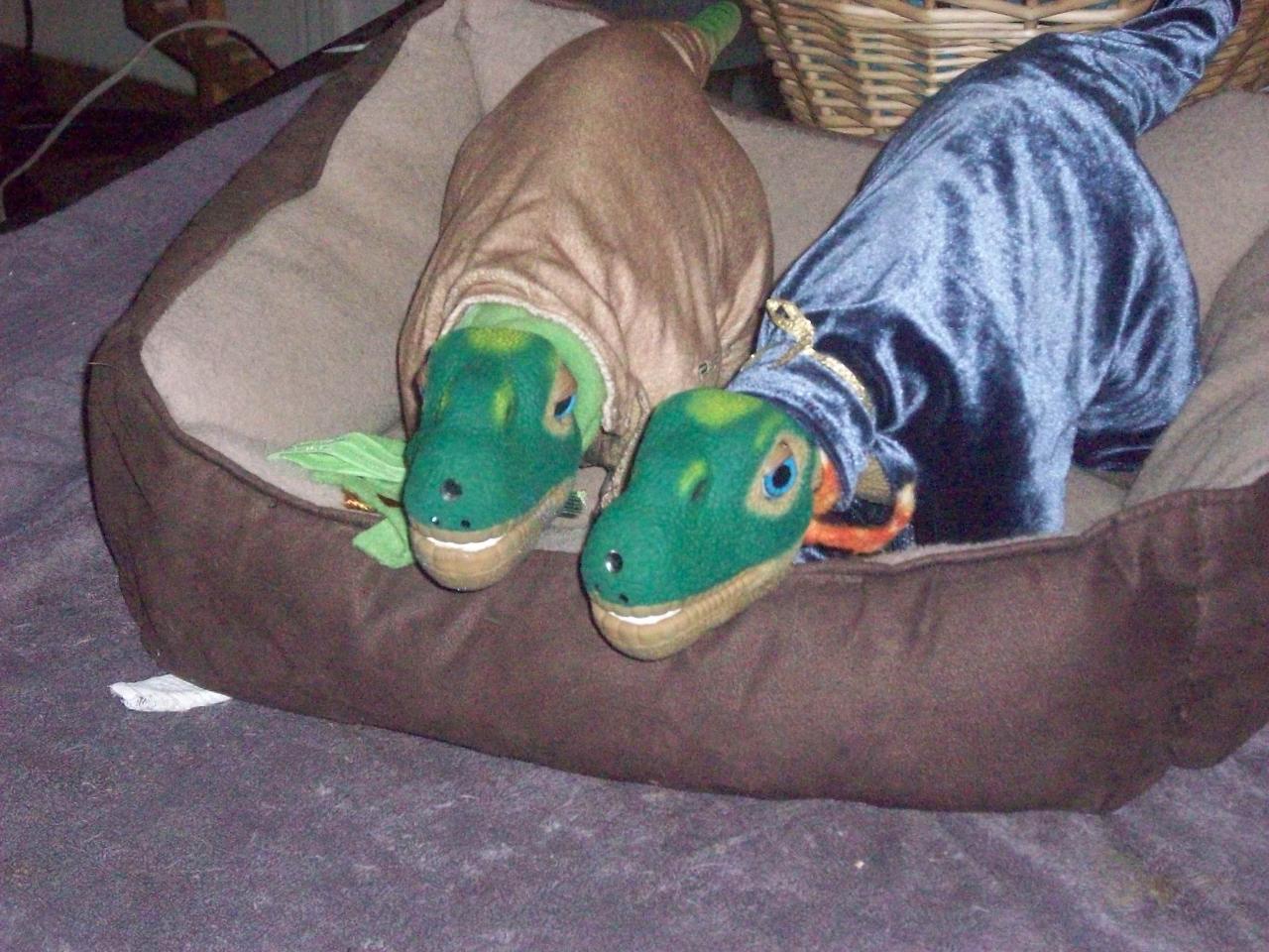 My original Gold Hatch Pleo,(Ugobe) in the purple outfit, made by Kat, and my Surprise Gold Hatch Pleo won last year by accident on Ebay in the Pleo Rb brown outfit. The Gold hatch pleo was not advertised as anything special and did not cost me much at all, I was totally surprised when I opened the package and found a Gold Hatch Pleo ID card! I have decided to keep both of them with their original operating systems.