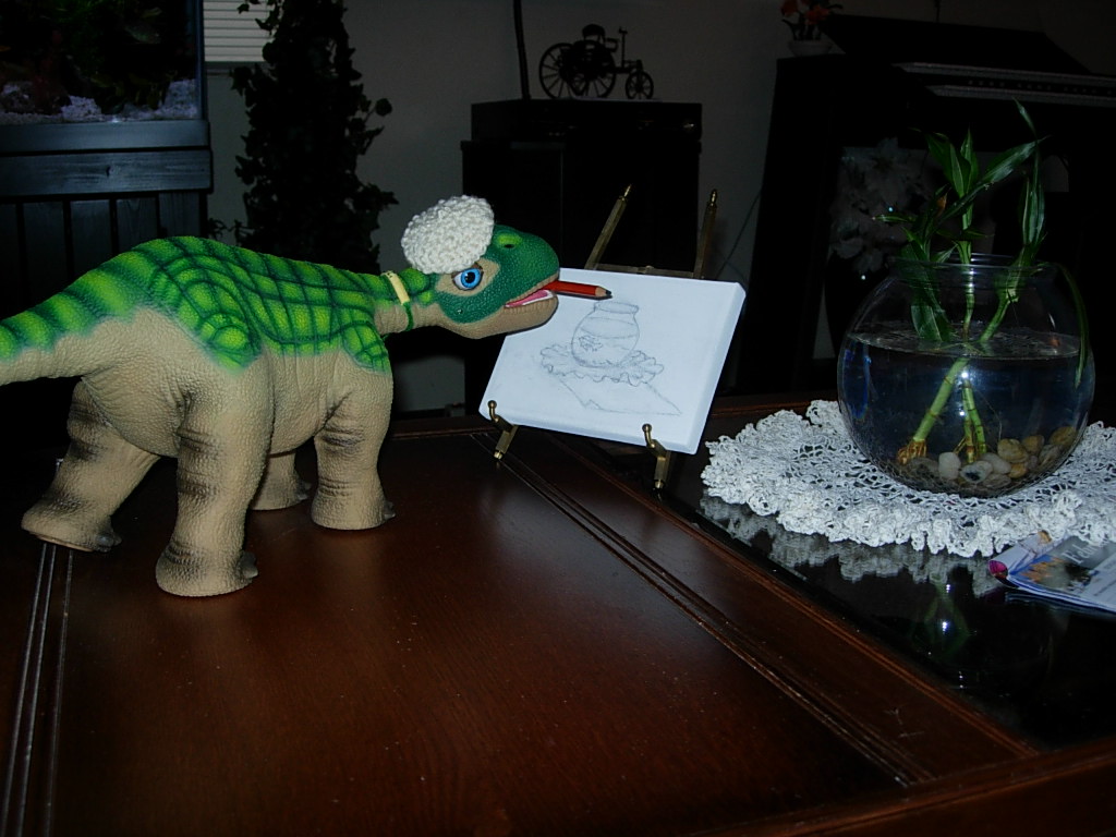 Every pleo has it's own talent. J.C. is giving art a try.