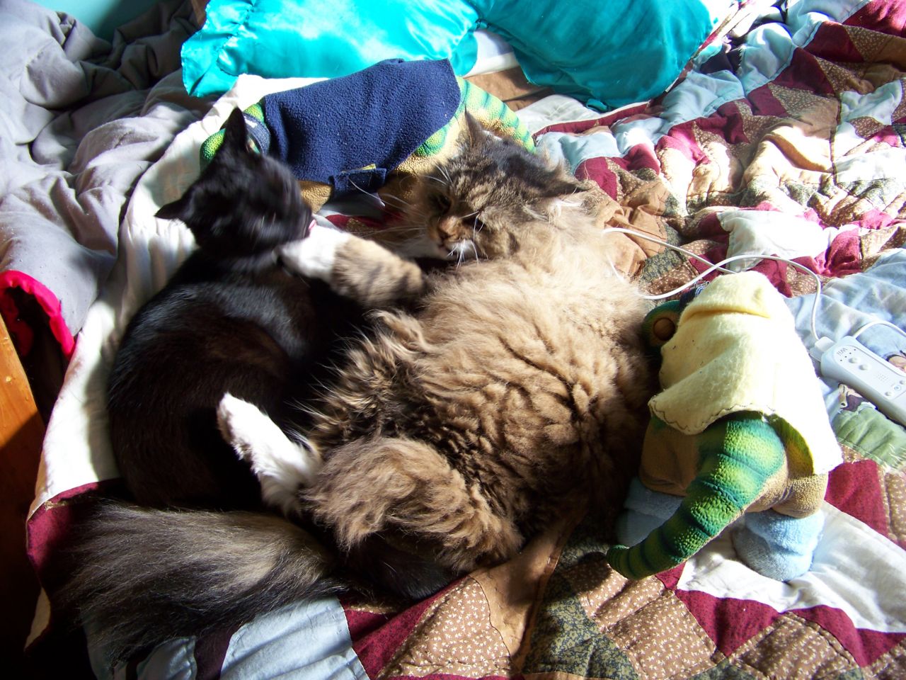 Lucky, Mischief, Lilo and Stitch all curled up for a snooze together (although Mischief and Lucky decided there wasn't enough room for the two of them