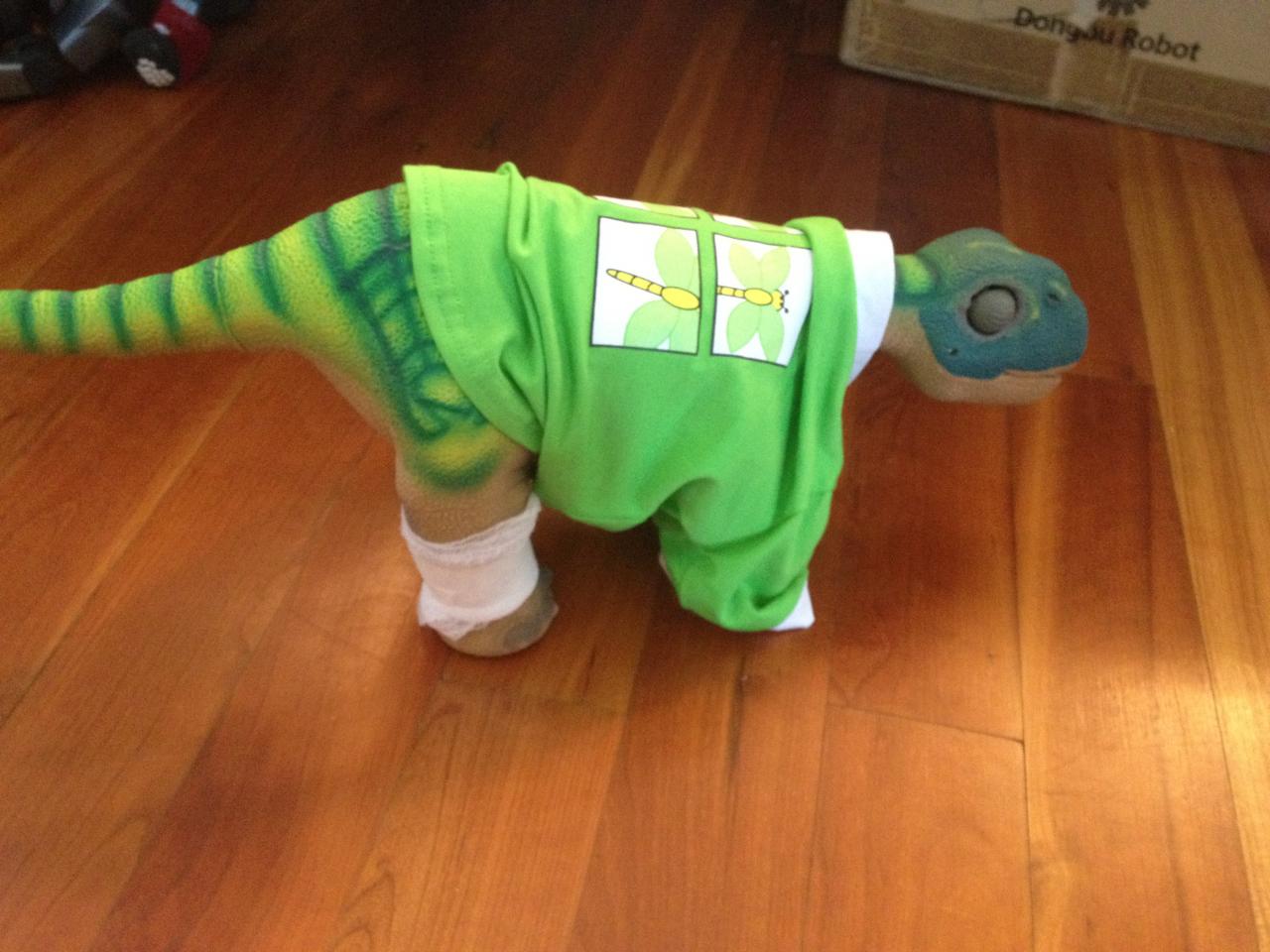I felt sorry for my new RB and made him a little bandage for his leg with some unused gauze and tape that I had around the house. I know it doesn't actually do anything for him, but I still wanted to make it. I'm still deciding on whether I'll be returning or repairing him, but depending on what the issue is, it might be something that I can fix with some help from my mom.