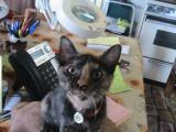 Ginger is a "Big " girl now, earning a special necklace from her "daddy". Red is a great color for her and the velcro necklace has little bees on it, which I did not notice till now, but are glow in the dark, which makes it easier to see in the dark. Bees are purrfect for her, cause being a Tortie, she is a Busy little Bee. LOL