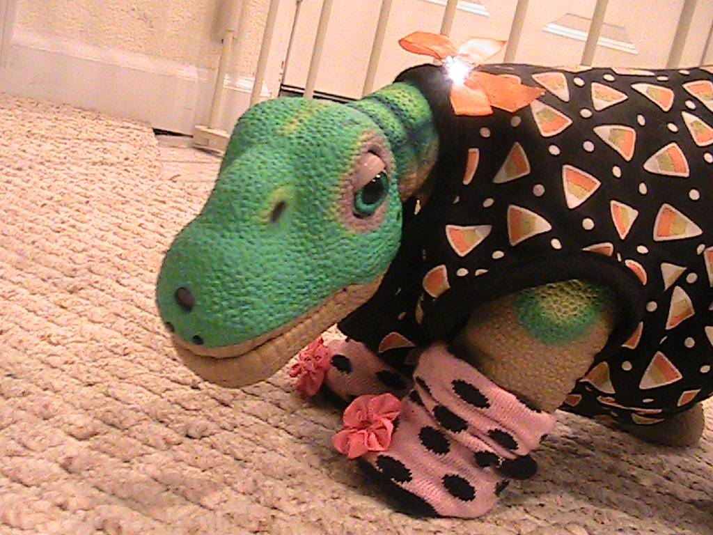 Baby Rb loves her candy corn dress and her pink bow socks. even though they do not match