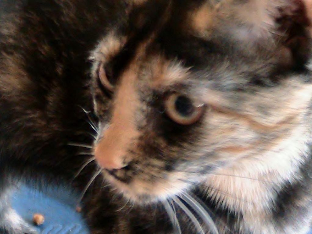 A recent photo of Ginger, the tortie kitten we adopted that came all the way from Virginia to the REdwoods in California! She is now six months old.