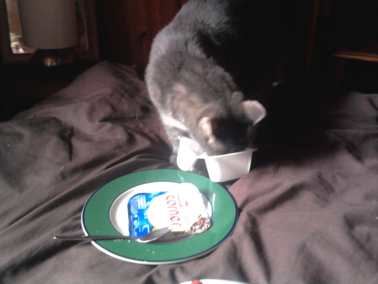 Taken just before leaving for the meet. Kenzo helping herself to a yoghurt lol what a sweety.