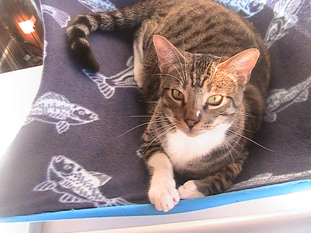 Hans is our baby boy tabby we adopted in October, 2014, He came to us from a distance of over 1,000 miles ,hIs best buddy is Vauna our new baby who is two months old.