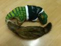 This is Milo, Munchkin's best friend, bought off ebay, he has been very much loved, and i've got him a 'pleo rules' shirt, to protect his paint, although it can't help against ferret attack...  must remind myself, let pleo out for walkies when ferrets are snoozing....