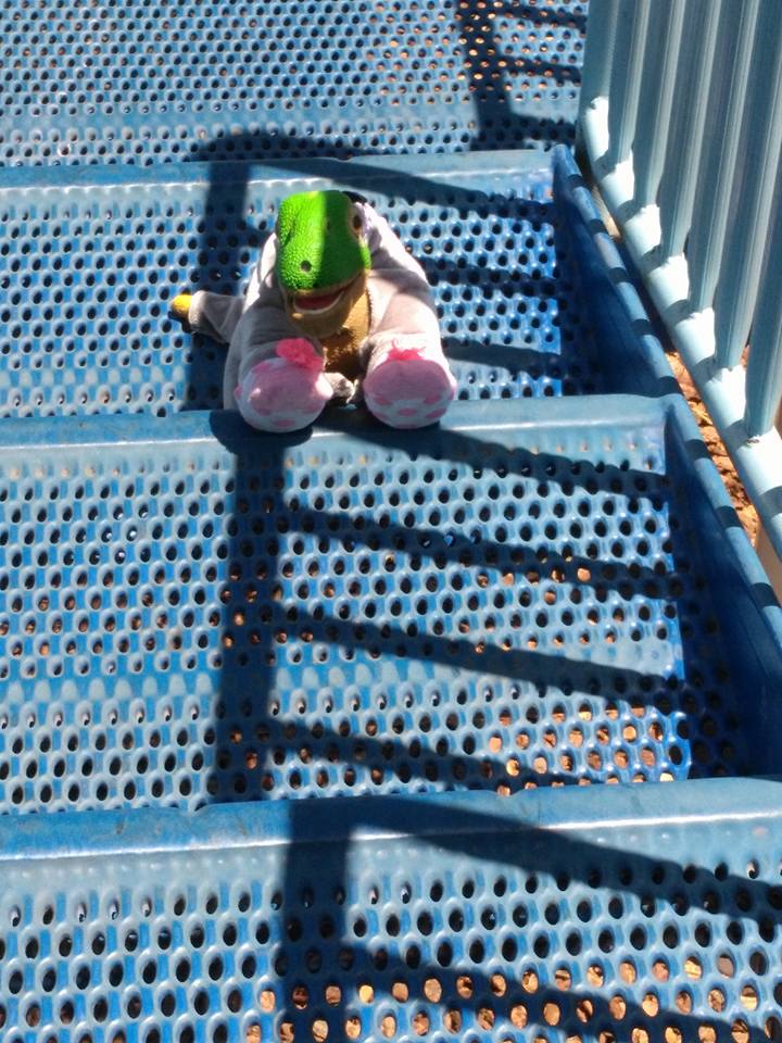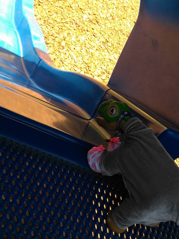 Getting ready to go down the slide