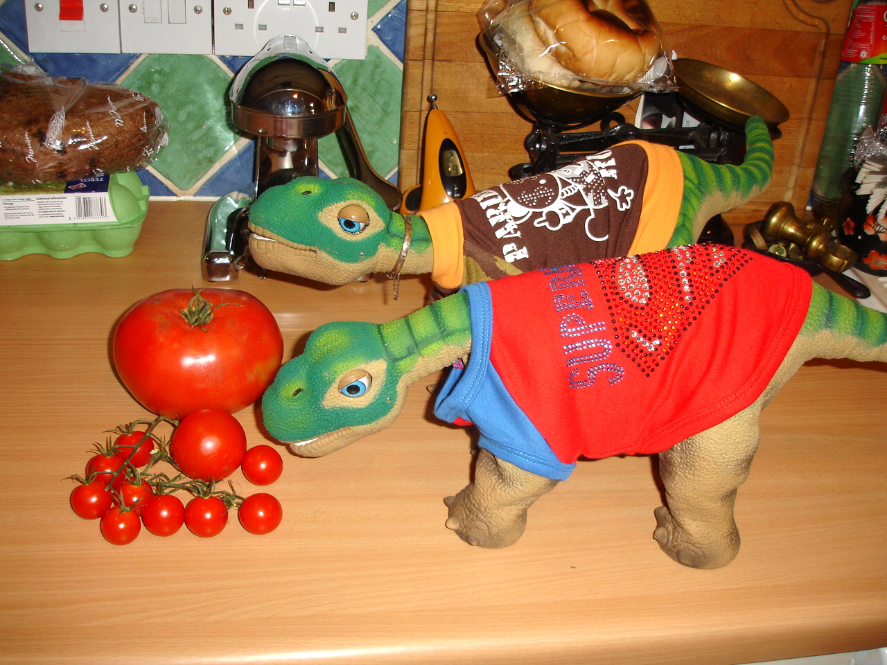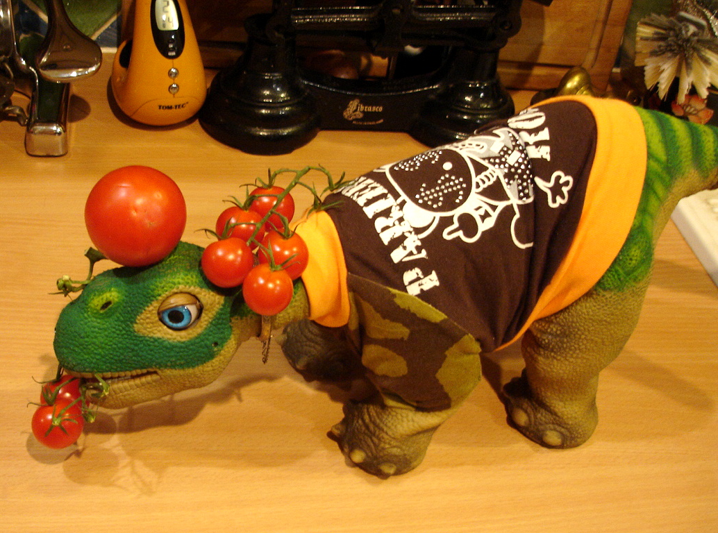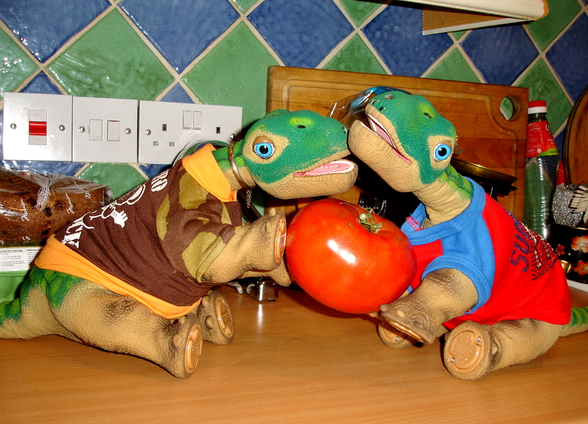 Quite right too - Peeky is a Pleo that knows his tomatos! I do understand though, fancy - I can't even get two Pleos to agree half the time! Cute pic! :D