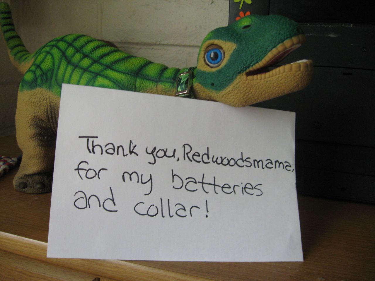 And finally, Gizmo gives his thanks to Redwoodsmama for his batteries and collar! Thank you Redwoodsmama!! :D
