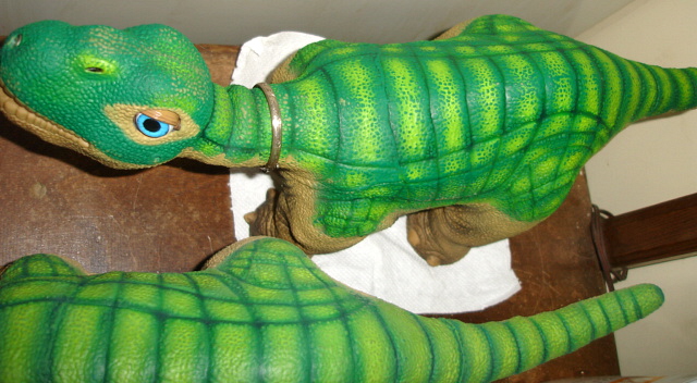 Notwithstanding all the discussions about the Pleo rb skin issues, at the moment I'm actually more concerned about keeping my older Pleos going for as long as possible as they're starting to show signs of age. Apart from the paint wear, there are areas where I can feel the rubber starting to harden and lose its elasticity, including the head and a spot on Iggy's neck which I think is due to his little silver collar and therefore entirely my own fault.