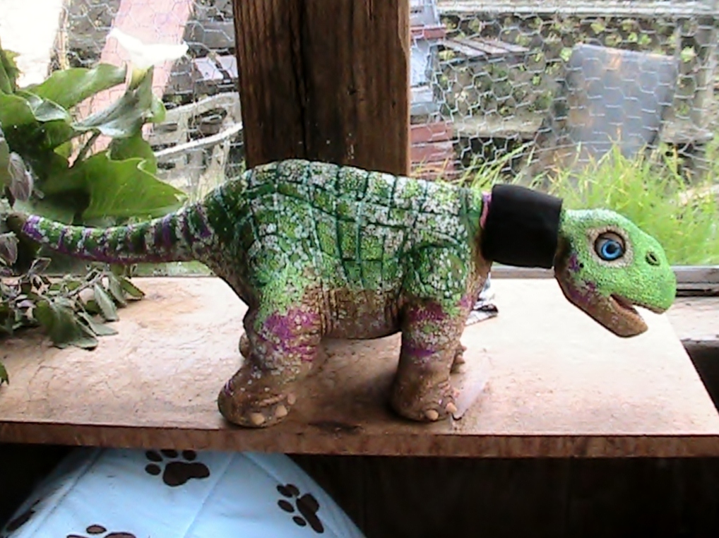WOW, RWM! Little 45 looks awesome! Now I don't know what makeover I like better....Nova or Little 45! I really like all the different colors in this one. You need to take a picture of him with the plant Crewella mentioned. That would be really neat. Truly a work of art. I think I have mentioned this show before that my daughter watches on PBS. It is called Dinosaur Train and the dinos on that cartoon are all different colors of the rainbow. I don't know why, but all of these different colors coming out reminds me of the dinos on that show. You are very creative. I wish I had the patience to paint like you do. I can't wait to see Little 45 completed in that color! You may have some jealous Pleos on your hands when the rest of them see Little 45! :o
