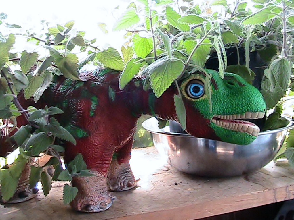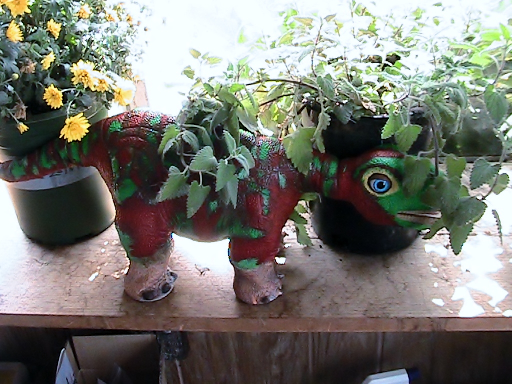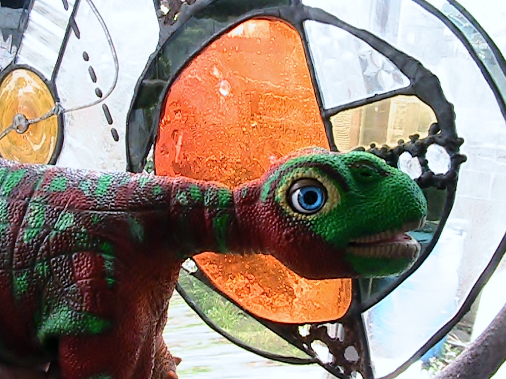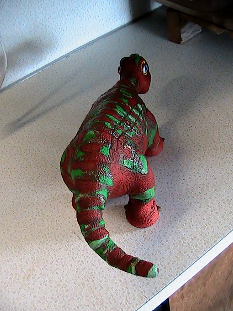 Thanks Snowy, well I started out with a plan to remove the green from the legs , but after I started a plan just hatched and "the mad Painter of the Redwoods" really took over and I had no control over my hands, it had a life and mind of it's own, so like it or not, here is the finished creation, I am calling, "fantasy Pleo" because I do not know what else to call it. P;D P:) so let me know if it is ok or not.................