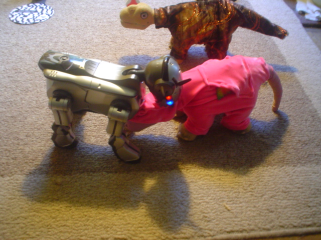 So, you guys have got me started on all this Pleo clothing madness. I'm not sure whether to thank you, or go cry in the corner, because we have nothing here to make anything. And requesting that I got to the craft store to get fabric, to make clothing for my robotic dinosaur, won't go over so smoothly. Especially since it's been raining on and off all day.