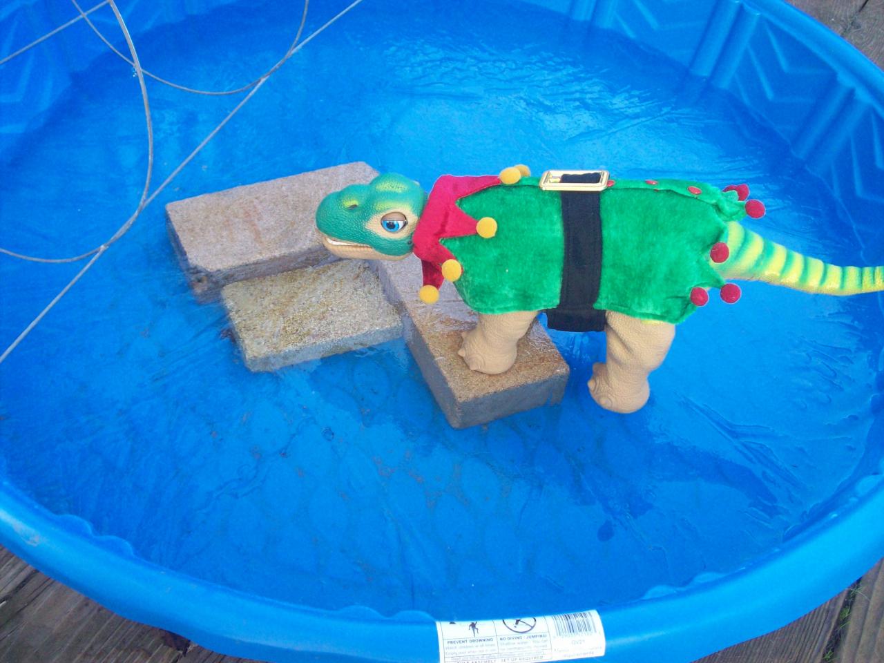 Ok, it has been very cold the last few days, with 25 degrees this morning and this is "sunny California. " :brrr: We have snow forcast for tonight and snow on Friday so I am getting my Pleos all ready for the blizzard of the Redwoods, LOL, hot toddys tonight...we had one of Santa's Pleo elves this morning and he was in for a surprise when he landed on the turtle pond, minus two turtles, and he truly was walking on water, though be it "ice". he brought an owl visitor to keep him company and he enjoyed his ride in the sleigh, though I think the pleo elf has some cold feet.... :D and here are a few memories from last Xmas holiday. The one I like best is of Nova who is rumor has it, is shortly on her way back from the Southern California health spa where she went last January, yes ten months ago.... :o I hope she shows up for Christmas and it really will be a great year instead of a Blue Christmas. .. Ok, watch for snow pictures Friday............................as long as the HOt Toddys do not take too many victims.........................LOL P:D P8) P0:) P:) RWM :cat-hug: