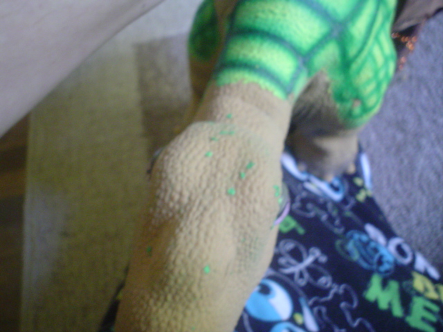 But don't panic, this paint was obviously MAJORLY screwed up, I think he wasn't prepped correctly.. maybe he had a layer of something on him that prevented the paint from sticking properly.. this is not the norm for PleoRB at all and I could have had him replaced. I just fell in love with him & his eyes and I'm sick of constantly replacing broken RB's (I have really bad luck) So far the only actual skin damage is a slight peeling on his neck which never looked great to begin with. That just appeared as the paint curled away. (I had huge sections that literally curled up and away from his skin)